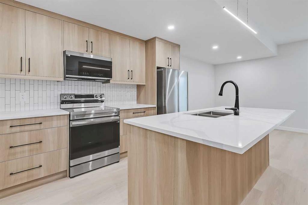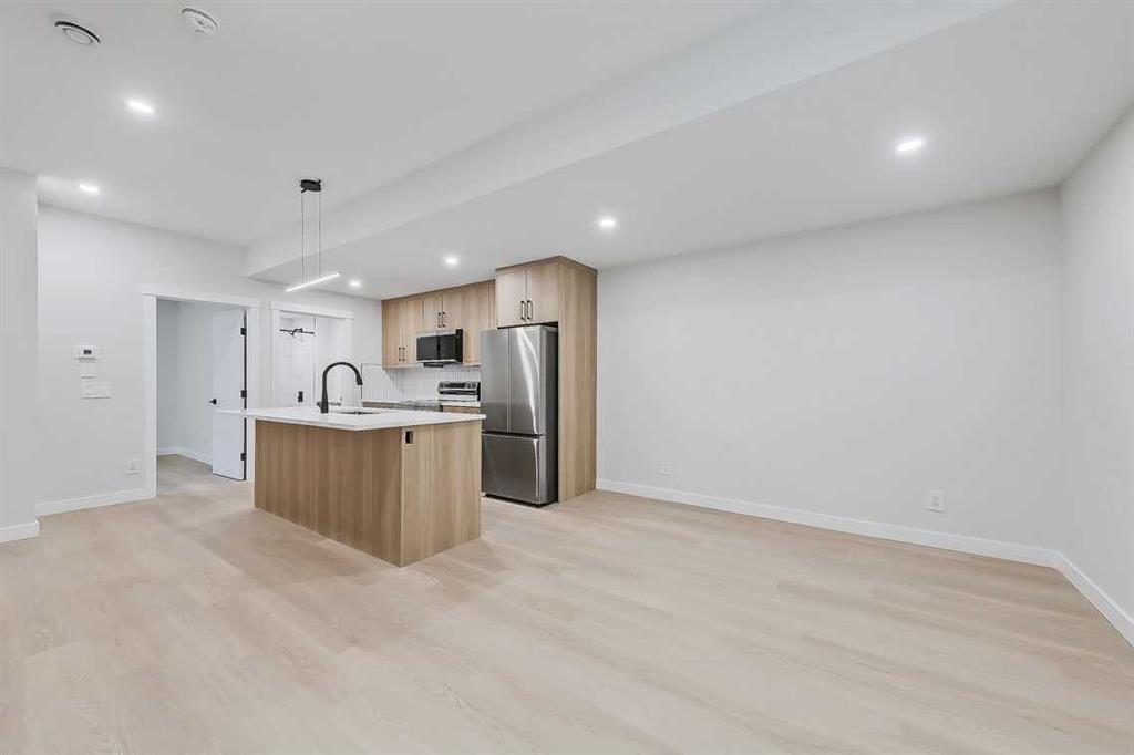 This upscale infill blends high-end design with everyday practicality, offering a legal two-bedroom basement suite (Approved with the development permit by the city) – perfect as a mortgage helper or for extended family! With an open-concept main floor, a luxurious primary suite, and a prime inner-city location, this home is built for both comfort and convenience! Step inside to a bright, welcoming foyer where sleek finishes and warm wood tones on the built-ins set the stage before leading to a sun-filled dining room at the front of the home. Large windows bring in natural light, making this space perfect for hosting or casual meals. The chef-inspired kitchen sits at the heart of the home, featuring ceiling-height custom cabinetry, dark grey countertops, a waterfall-edge island with oak accents and LED skirt lighting, plus a high-end appliance package. A seamless flow into the living room makes entertaining effortless – cozy up by the floor-to-ceiling grey porcelain tile gas fireplace, framed by custom shelving with warm LED accent lighting. Off the main space, a mudroom with built-ins keeps things organized, offering direct backyard and garage access. A sleek powder room is tucked away nearby, along with a main floor office – ideal for working from home, complete with a large window and built-in desk. Head upstairs, where a spacious bonus room greets you at the top of the stairs. Whether it’s a cozy movie night spot, a play area, or a second lounge, this flexible space adapts to your needs. The primary suite is a retreat you’ll never want to leave, designed with a soft, neutral palette that feels warm and inviting. The spa-like ensuite features a deep soaker tub, a glass-enclosed shower, and a double vanity with designer tile selections throughout. A large walk-in closet with custom shelving completes the space, making it as functional as it is luxurious. Two additional good-sized bedrooms, a sleek main bathroom, and a convenient laundry room with built-in storage complete the upper level. The fully finished legal suite (subject to permits and approvals by the city) is a game changer – offering a bright and modern two-bedroom space with its own entrance. Whether you’re looking for a rental income opportunity or a private space for family, this suite has everything needed for comfortable independent living. It includes an open living area, a stylish kitchen, and a full bathroom with the same high-end finishes found throughout the home. Nestled in Renfrew, this home offers walkable access to Bridgeland’s top cafés, restaurants, and boutiques. Enjoy brunch at Blue Star Diner, fresh groceries from Blush Lane, or a drink at Bridgeland Distillery. Outdoor lovers will appreciate Tom Campbell’s Hill and Bottomlands Park, while families will love being close to St. Alphonsus, Children’s Village, and Colonel Macleod School. Downtown is just 5 minutes away, with quick access to Edmonton Trail, 16th Ave, and Deerfoot Trail.