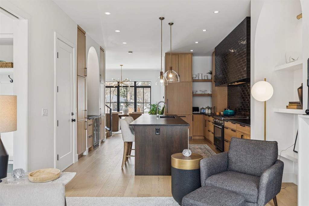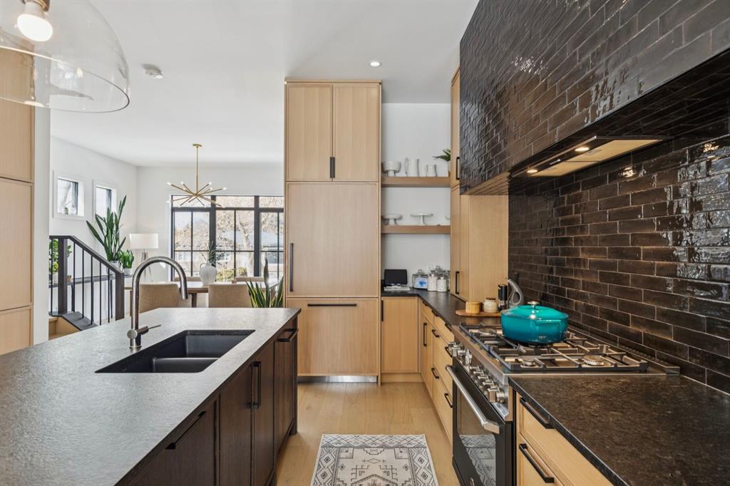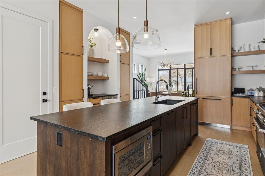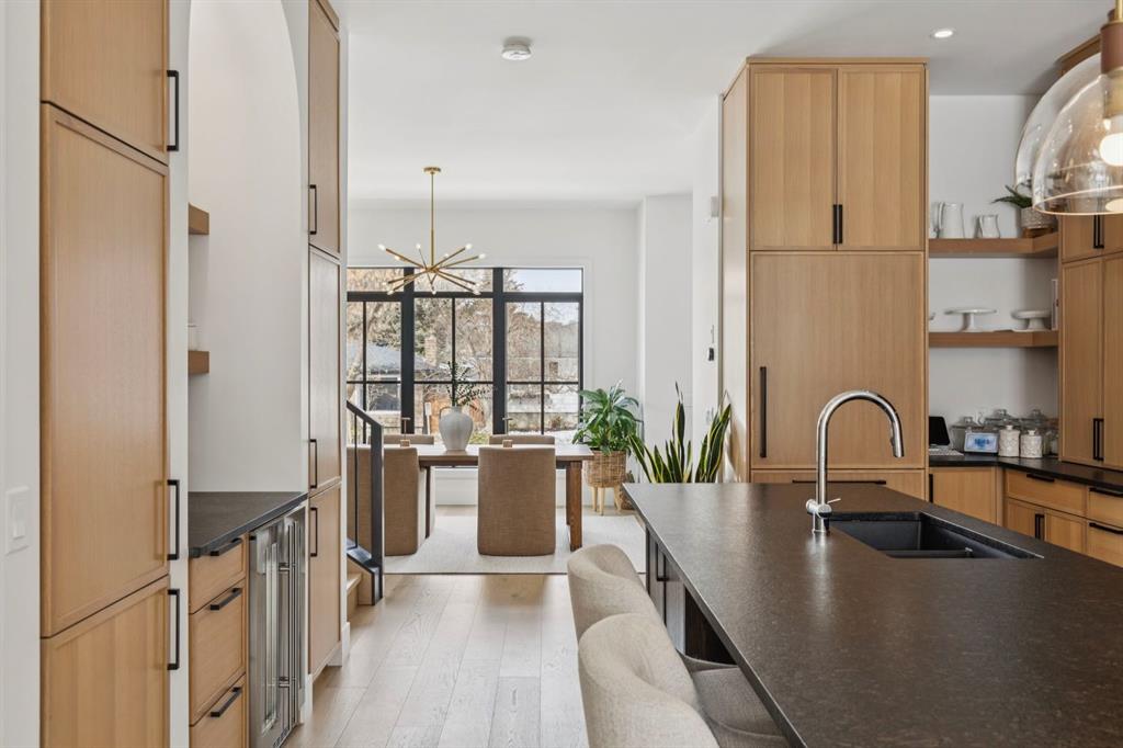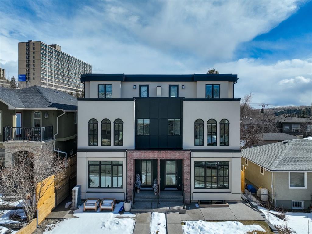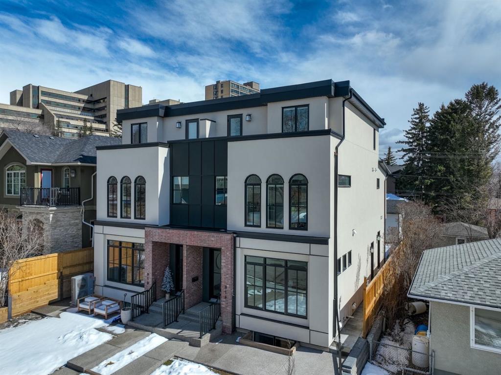 LUXURY & MOVE IN READY. Welcome to this 3 Storey Semi Detached with a legal suite located on a desirable street in the heart of Parkdale. Steps away from Foothills Hospital. This home has luxury finishes throughout with quality craftsmanship. The inviting main level welcomes you with the warmth of wide-plank hardwood floors, complemented by soaring 10-foot ceilings and chic designer lighting. An expansive front dining area sets the stage for memorable gatherings, seamlessly connecting to the heart of the home—the beautifully appointed kitchen. Here, you’ll find leathered granite countertops, an island with eating bar, a stylish dry bar, ample storage, with Fisher Paykel and Bertazzoni appliances, including an integrated fridge and dishwasher.