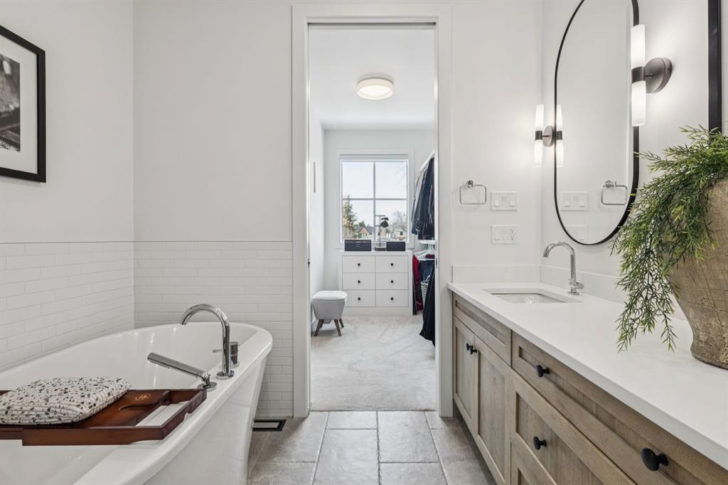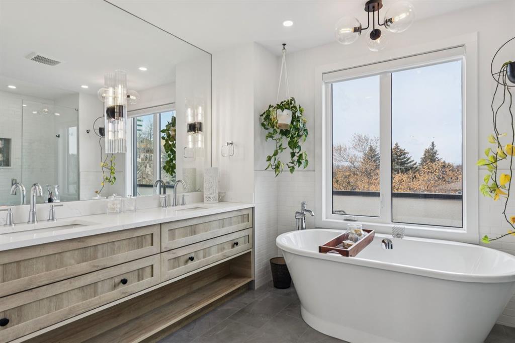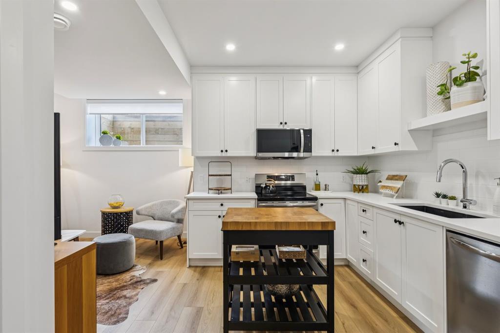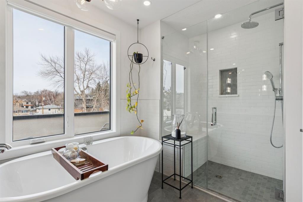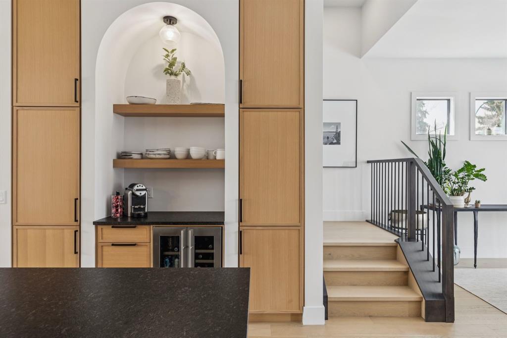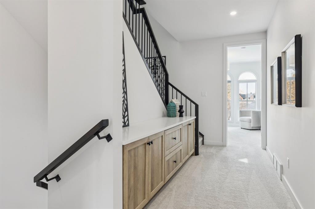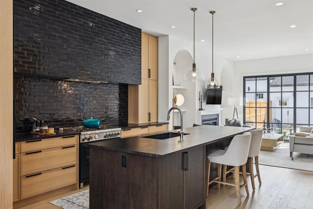 LUXURY & MOVE IN READY. Welcome to this 3 Storey Semi Detached with a legal suite located on a desirable street in the heart of Parkdale. Steps away from Foothills Hospital. This home has luxury finishes throughout with quality craftsmanship. The inviting main level welcomes you with the warmth of wide-plank hardwood floors, complemented by soaring 10-foot ceilings and chic designer lighting. An expansive front dining area sets the stage for memorable gatherings, seamlessly connecting to the heart of the home—the beautifully appointed kitchen. Here, you’ll find leathered granite countertops, an island with eating bar, a stylish dry bar, ample storage, with Fisher Paykel and Bertazzoni appliances, including an integrated fridge and dishwasher.