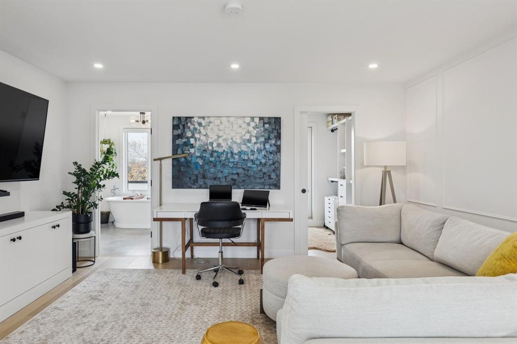 The versatile top level loft serves as a stunning private retreat. Enjoy a spacious bedroom, cozy sitting/den area, wet bar, walk-in closet, and a lavish 5-piece ensuite complete with dual sinks, a freestanding soaker tub, and a separate shower. Step out onto the expansive balcony to unwind or the Juliet balcony to watch the sunrise. This level also offers flexibility and could be reconfigured to create an additional bedroom if desired.