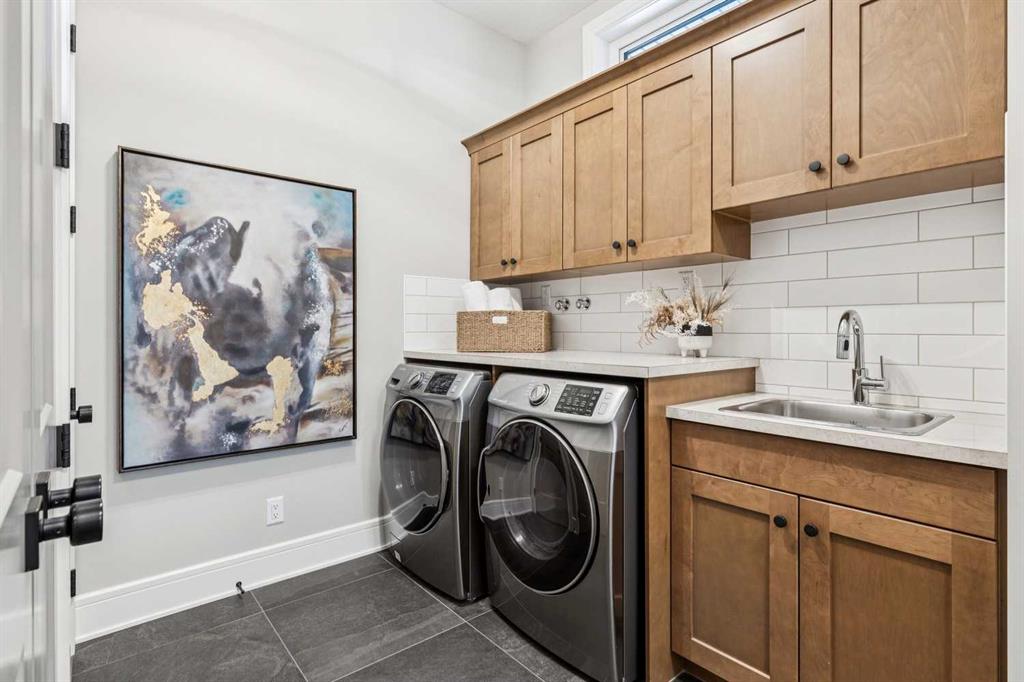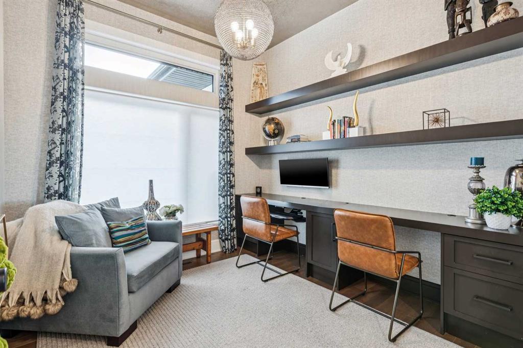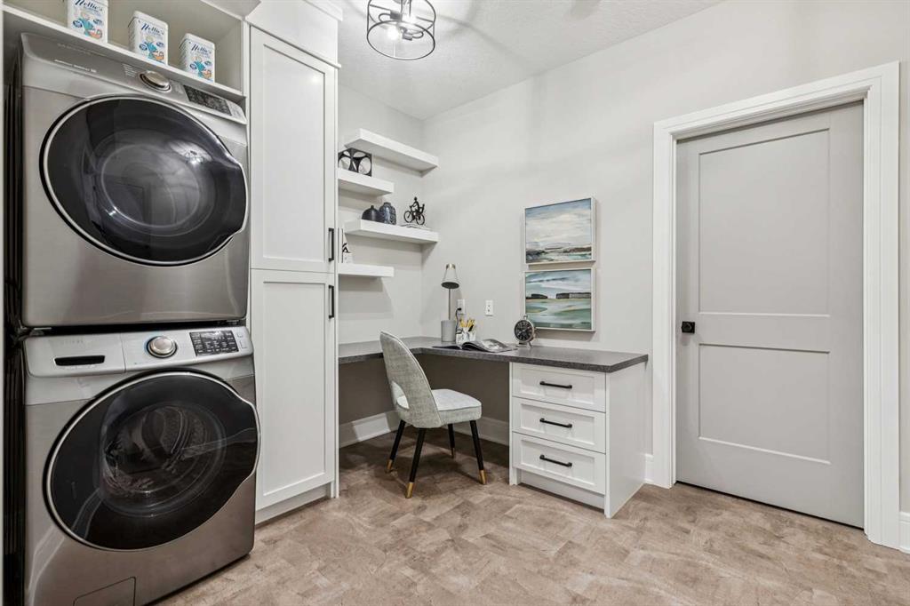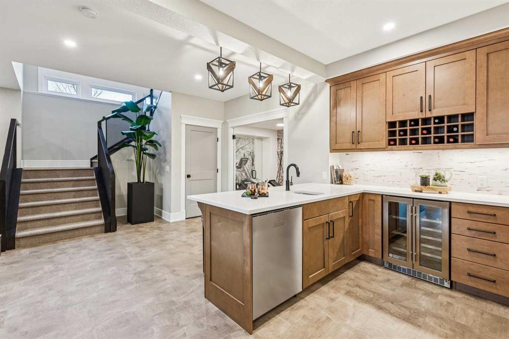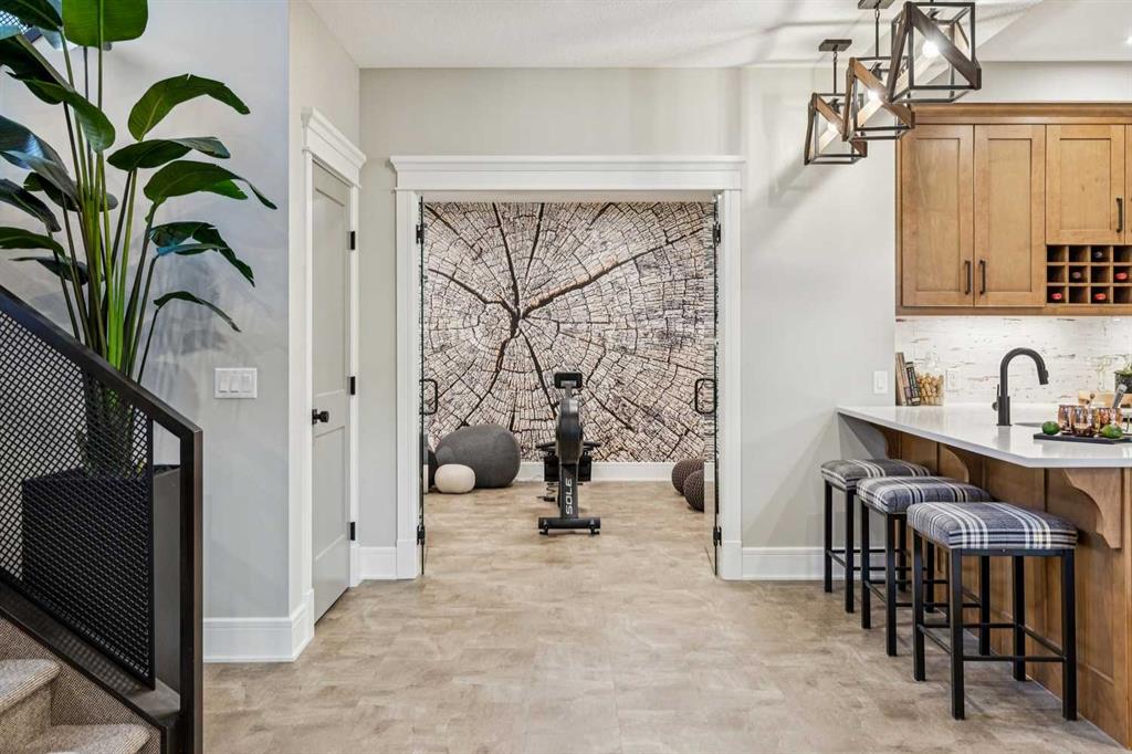 Welcome to a truly remarkable residence in the sought-after southwest community of Crestmont—a former Augusta show home showcasing extensive upgrades, refined craftsmanship, and a unique combination of luxury and functionality. Positioned on a generous corner lot with rare 5-car garage, this highly coveted bungalow boasts more than 4,000 sq. ft. on two levels and offers an elevated lifestyle with thoughtfully designed spaces both indoors and out. The open-concept main level boasts 10' & 11' ceilings and is anchored by a stunning chef's kitchen, featuring extensive custom cabinetry, high-end Sub-Zero and Wolf appliances, and an oversized pantry—perfectly suited for both everyday living and elegant entertaining. Sunlight fills the space through transom windows, flowing seamlessly into inviting living and dining areas that open to multiple outdoor spaces. The primary suite on the main level is a private retreat of impressive scale, complete with its own southwest-facing deck. A spa-inspired ensuite with dual vanities, heated floors, a luxurious soaker tub and an expansive dressing room creates a serene, hotel-calibre experience. The main floor is complete with an executive style office featuring built-in desk and cabinetry, powder room and functional laundry & mudroom. Designed for entertaining and relaxation alike, the fully developed lower level offers two additional generously sized bedrooms, each with it's own full bath and an spacious recreation and games room. A sophisticated wet bar is complemented by a dedicated wine room, while a fitness room and hobby/craft room with second laundry area adds to the home’s lifestyle appeal. Outdoor living is equally exceptional, with multiple decks and private outdoor spaces, including a secluded walk-out cove featuring a hot tub. Outstanding landscaping includes feature rundle stone, wrought iron fence and back yard bordered by additional evergreen trees for enhanced privacy and year-round enjoyment. A standout feature rarely found: a five-car garage with room for vehicle lifts, and offering unparalleled storage, dog wash and flexibility for car enthusiasts or hobbyists. Situated in the coveted Crestmont community on Calgary’s west side, this home offers more than just luxury indoors. Residents enjoy access to an inviting HOA clubhouse, scenic parks and pathways, and sport courts for recreation and play. Retail destinations are conveniently close, and the location provides easy access to downtown Calgary as well as direct routes to the mountains, making daily life and weekend escapes effortless. This is a rare opportunity to own a statement property in Crestmont—perfect for empty nesters or those about to be - where luxury, privacy, and thoughtful design converge in one extraordinary home.