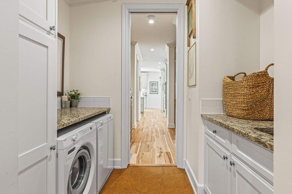 the legal secondary suite. Low VOC paints and glues have been used throughout, and in-floor heating extends across the main and lower floors and