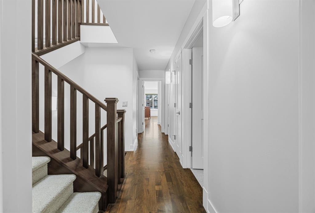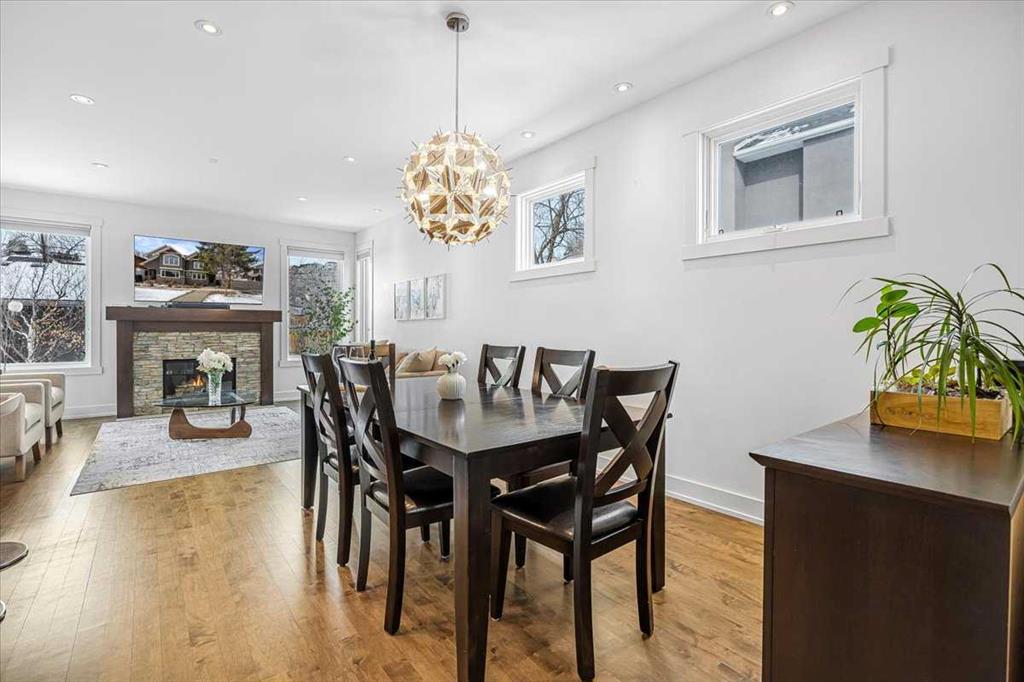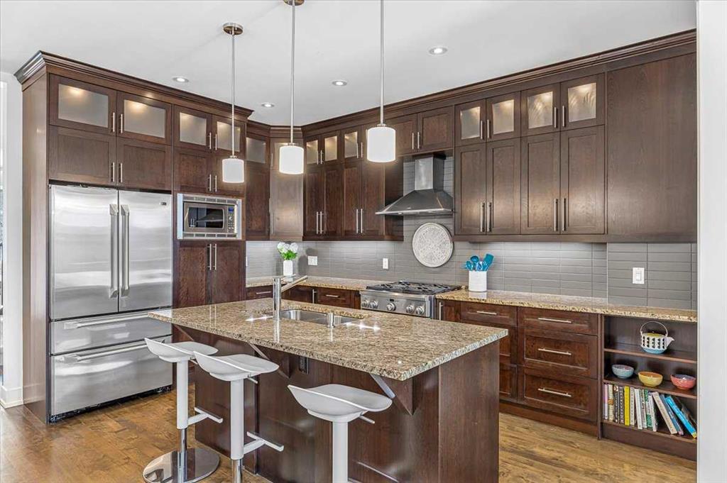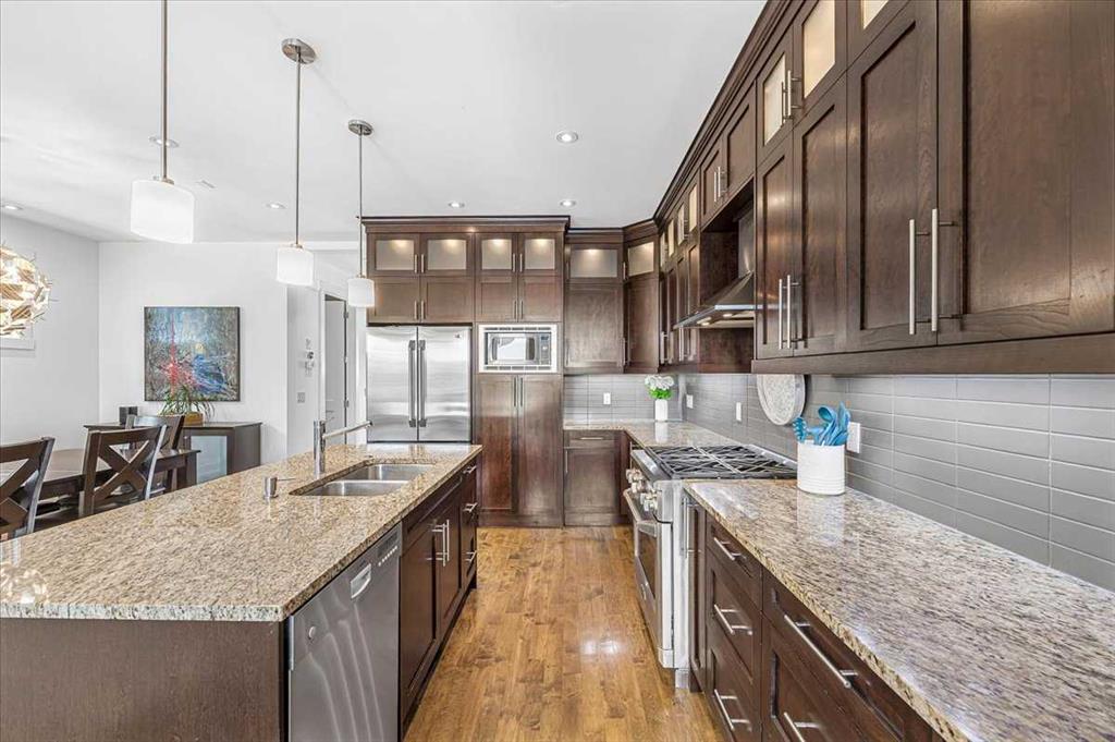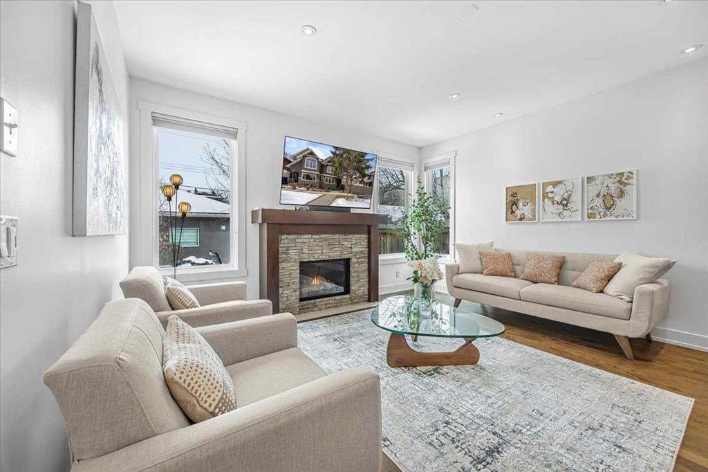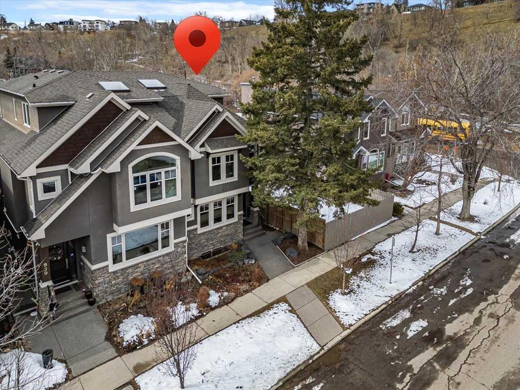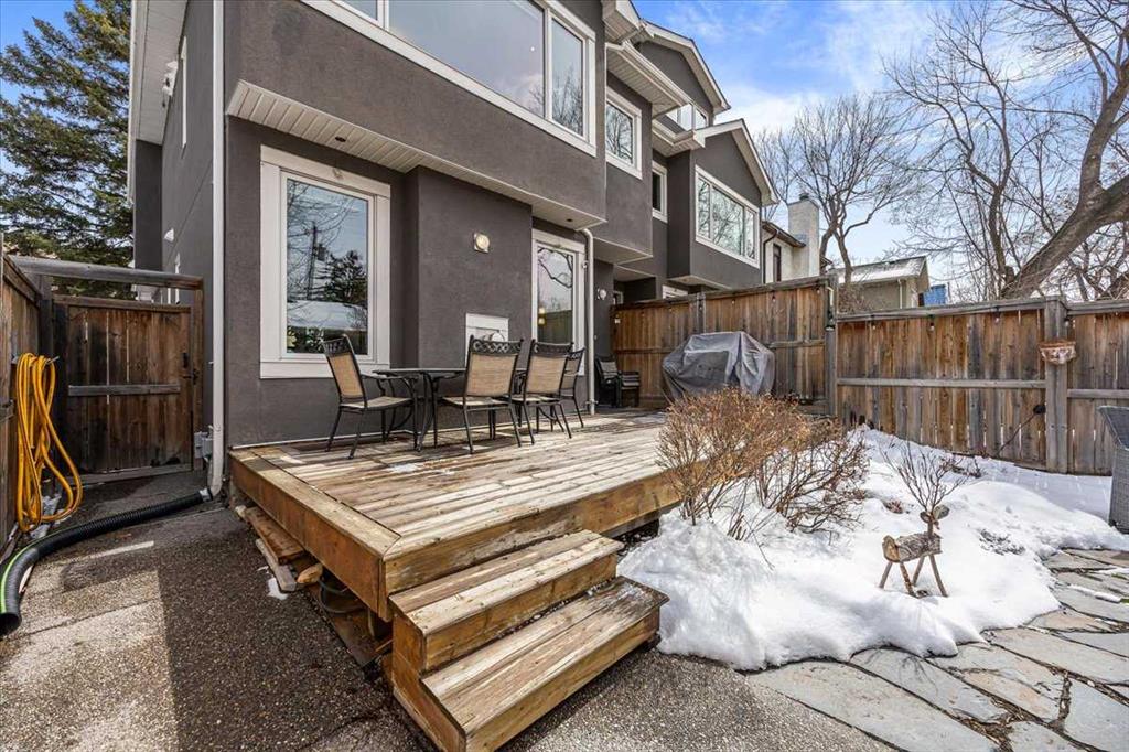 Welcome to elevated living in one of Calgary's most coveted inner-city neighbourhoods - Sunnyside. This stunning thoughtfully designed three storey semi-detached executive home delivers luxury finishes and an unbeatable lifestyle in the heart of Calgary. Featuring 4 bedrooms and 5 bathrooms, on a quiet street - nestled near McHugh's Bluff. Over 2500 sq ft above ground on three levels and a fully finished basement. The main level has an open floor plan, kitchen, dining and living area adjacent to each other - ideal for family life or entertaining. The kitchen includes quartz counter tops, full height cabinetry, 6 burner gas range, a breakfast bar and plenty of space to prepare meals and store items. The spacious back door mudroom has built in cabinetry to store your seasonal items & clothing - offering easy entry & exit.. Ascend to the second level to a spacious master bedroom with spa-inspired en-suite complete with dual vanities, heated floors, steam shower, jet soaker tub and a water closet. Rounding out the second level is 2 more bedrooms, a 4 pc bath and separate laundry room. The third level has a generous flex space, 2 pc bathroom and storage closet - perfect for home office, play/hobby room or guest suite. Descend to the lower level where you can unwind in the home gym, entertain at the sophisticated wet bar or relax while watching movies or having a game night. Step outside to the deck and enjoy a meal you’ve prepared with your gas BBQ while taking in the resort like tranquil pond feature & professionally landscaped grounds. Or cozy up to the firepit area for evening gatherings. A poured aggregate walkway leads from front door all the way to the double garage and patio area. The home is situated directly across the street from a park - offering a rare view of green space and has a walking/bike path connecting you to Calgary's pathway network with ease. A 15 minute walk takes you to downtown Calgary or to Kensington where if offers - boutique shops, acclaimed restaurants and a vibrant community life. This home is built for modern executives & families alike. View this gorgeous home today - where luxury meets nature and urban convenience - perfectly balanced!