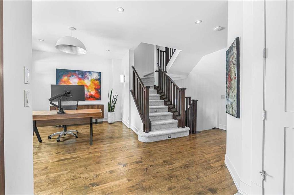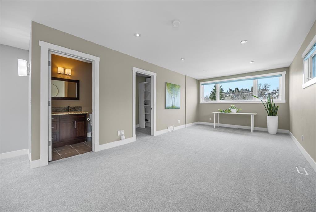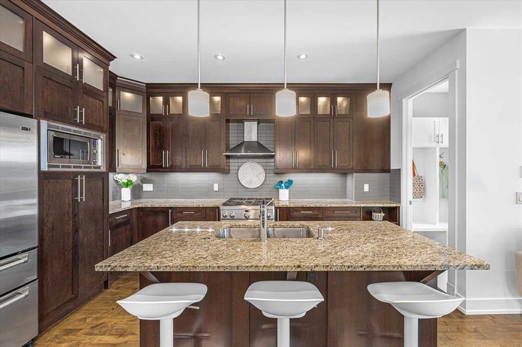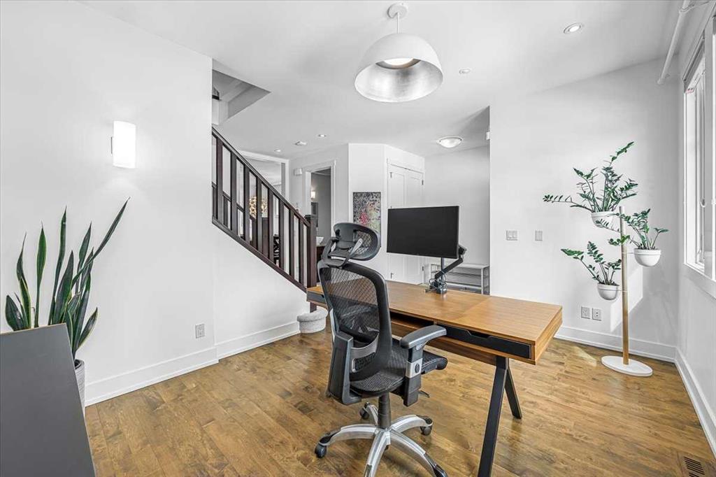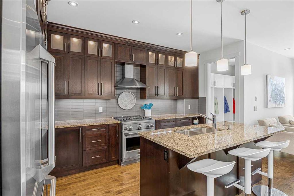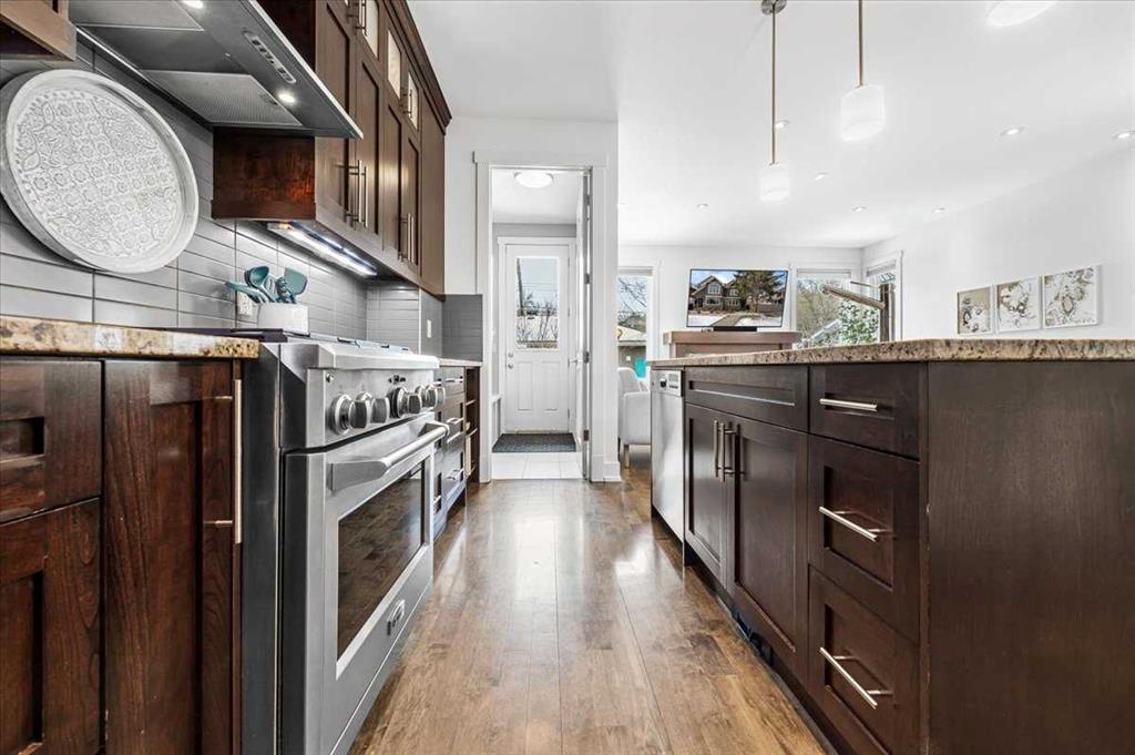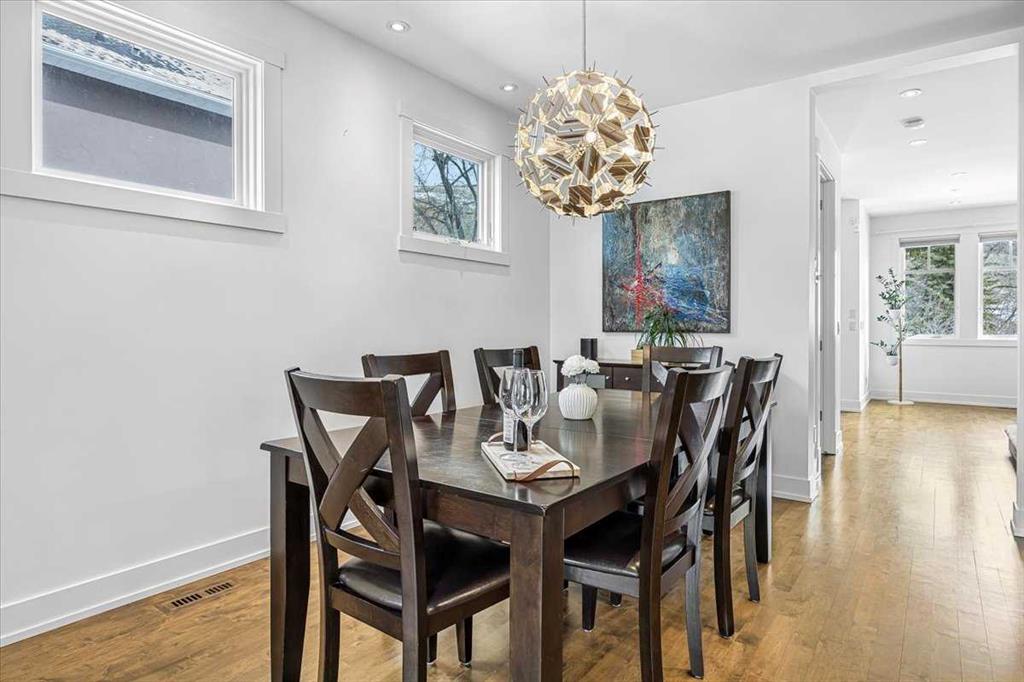 Welcome to elevated living in one of Calgary's most coveted inner-city neighbourhoods - Sunnyside. This stunning thoughtfully designed three storey semi-detached executive home delivers luxury finishes and an unbeatable lifestyle in the heart of Calgary. Featuring 4 bedrooms and 5 bathrooms, on a quiet street - nestled near McHugh's Bluff. Over 2500 sq ft above ground on three levels and a fully finished basement. The main level has an open floor plan, kitchen, dining and living area adjacent to each other - ideal for family life or entertaining. The kitchen includes quartz counter tops, full height cabinetry, 6 burner gas range, a breakfast bar and plenty of space to prepare meals and store items. The spacious back door mudroom has built in cabinetry to store your seasonal items & clothing - offering easy entry & exit.. Ascend to the second level to a spacious master bedroom with spa-inspired en-suite complete with dual vanities, heated floors, steam shower, jet soaker tub and a water closet. Rounding out the second level is 2 more bedrooms, a 4 pc bath and separate laundry room. The third level has a generous flex space, 2 pc bathroom and storage closet - perfect for home office, play/hobby room or guest suite. Descend to the lower level where you can unwind in the home gym, entertain at the sophisticated wet bar or relax while watching movies or having a game night. Step outside to the deck and enjoy a meal you’ve prepared with your gas BBQ while taking in the resort like tranquil pond feature & professionally landscaped grounds. Or cozy up to the firepit area for evening gatherings. A poured aggregate walkway leads from front door all the way to the double garage and patio area. The home is situated directly across the street from a park - offering a rare view of green space and has a walking/bike path connecting you to Calgary's pathway network with ease. A 15 minute walk takes you to downtown Calgary or to Kensington where if offers - boutique shops, acclaimed restaurants and a vibrant community life. This home is built for modern executives & families alike. View this gorgeous home today - where luxury meets nature and urban convenience - perfectly balanced!