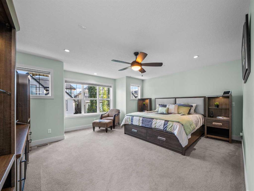 **OPEN HOUSE SATURDAY OCT 25th 11AM-2PM** Perfectly positioned directly across from Mahogany’s coveted West Beach gate and steps from a family park, this Baywest estate home blends size, luxury, and lifestyle in Calgary’s most award-winning lake community. Offering almost 3,150 sq ft and 4 bedrooms above grade, this property is designed for those who want space without compromise: oversized bedrooms, a bright bonus room wired with in-ceiling surround speakers and CAT5, and a stunning primary suite featuring a walk-in closet, spa-like ensuite with heated floors, and private retreat-like feel. Convenience is built in with an upper-level laundry room complete with sink, built-in cabinetry, and extra storage, making busy family life effortless. The main level combines functionality with sophistication: a chef’s kitchen with wall oven, gas cooktop, updated stainless steel appliances, and a butler’s pantry that doubles as a prep hub or barista-worthy coffee station, all flowing into the dining and living area complete with a warm fireplace as the centrepiece. A fantastic covered back patio with built-in BBQ line extends your living space outdoors for cozy summer nights. A dedicated main-floor office creates a true work-from-home solution. Premium upgrades elevate every corner: Duette top-down/bottom-up blinds, smart lighting throughout, two furnaces with zoned A/C, a Vacuflow system, and a premium Kinetico water treatment system with water softener, all supported by recently serviced mechanicals for peace of mind. The lower level, with high ceilings and a roughed-in fifth bedroom, is ready for your future vision; add a sixth bedroom and still have room to create a recreation haven. Outside, the oversized double garage with bump-out offers ample room for tools, bikes, or toys. Beyond the walls, Mahogany sets the stage for Calgary’s best lifestyle: a 63-acre freshwater lake, private beaches, skating, swimming, paddleboarding, a 22,000 sq ft Beach Club, 22 km of pathways, wetlands, parks, schools, and vibrant shopping and dining. This isn’t just a home—it’s a statement of living well in Calgary’s most complete community. Don’t forget to check out the virtual tour and book your private viewing today! MUST SEE IN-PERSON to truly get a feel for the size!!