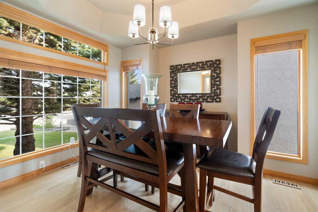 Beautifully maintained 1,682 sq. ft. vaulted walkout bungalow backing onto a natural ravine in desirable Morningside in Citadel. This immaculately maintained home is so versatile featuring 2 bedrooms on the main floor and 2 bedrooms in the basement, with 3 full baths. The living area offers a sunken living room with 14’ vaulted ceilings, skylights, refinished hardwood, and a three-way gas fireplace for maximum functionality and ultimate relaxation.The walkout level includes a wet bar with granite counters, high-efficiency stone surround gas fireplace, and direct access to the landscaped SE backyard. Recent upgrades include new Pex plumbing (2023), hot water tank (2024), Leaf Guard gutters (2024), Lennox high-efficiency modulating furnace with iComfort thermostat (2019), and full interior paint (2023). Additional highlights: cement tile roof, central vac (new with attachments 2025), Hunter Douglas blinds, Bosch dishwasher, two refrigerators, double attached garage, and SunSetter awning with remote. A rare walkout bungalow backing onto a private ravine setting—move-in ready with quality throughout!