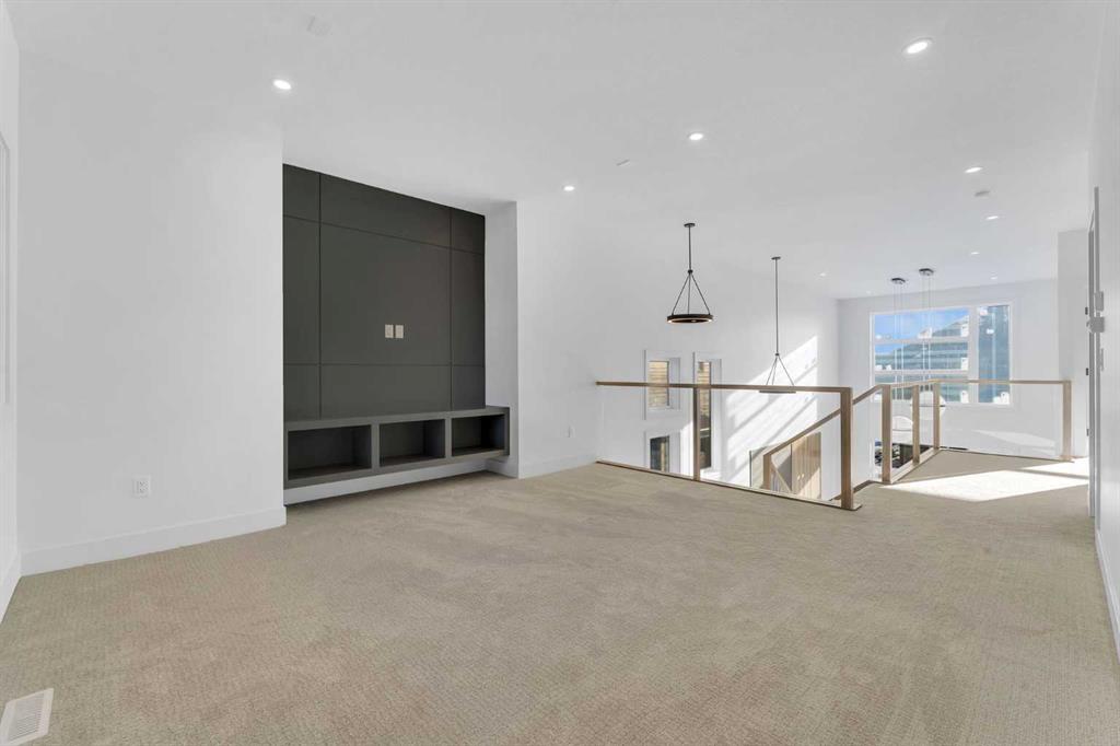 BACKING ONTO GREEN SPACE!! TRIPLE ATTACHED GARAGE!! SEPARATE ENTRANCE!! OVER 3200 SQFT OF LIVING AREA!! MAIN FLOOR BED & FULL BATH!! SPICE KITCHEN!! 5 BEDROOMS & 4 BATHS!! Step inside to a bright and spacious foyer that opens to a versatile main floor bedroom, can be used as office as well and a full 3pc bath. The main level features an elegant dining area, a chef’s kitchen with a large island, custom cabinetry, and a spice kitchen for added convenience! The living room is warm and inviting with a gas fireplace and large windows overlooking the green space backyard! Upstairs offers 4 bedrooms and 3 full baths, including a luxurious PRIMARY BEDROOM with a 5PC ENSUITE BATH and walk-in closet. Two bedrooms share a Jack & Jill 4pc bath, while the fourth bedroom enjoys its own private 3pc bath. A bonus area overlooks the open-to-below space, perfect for family room or kids’ lounge, plus laundry is conveniently located on the same floor. Located in the heart of Chestermere, close to the lake, schools, parks, and shopping — this home combines comfort, style, and a prime location. DON’T MISS YOUR CHANCE TO MAKE IT YOURS!!