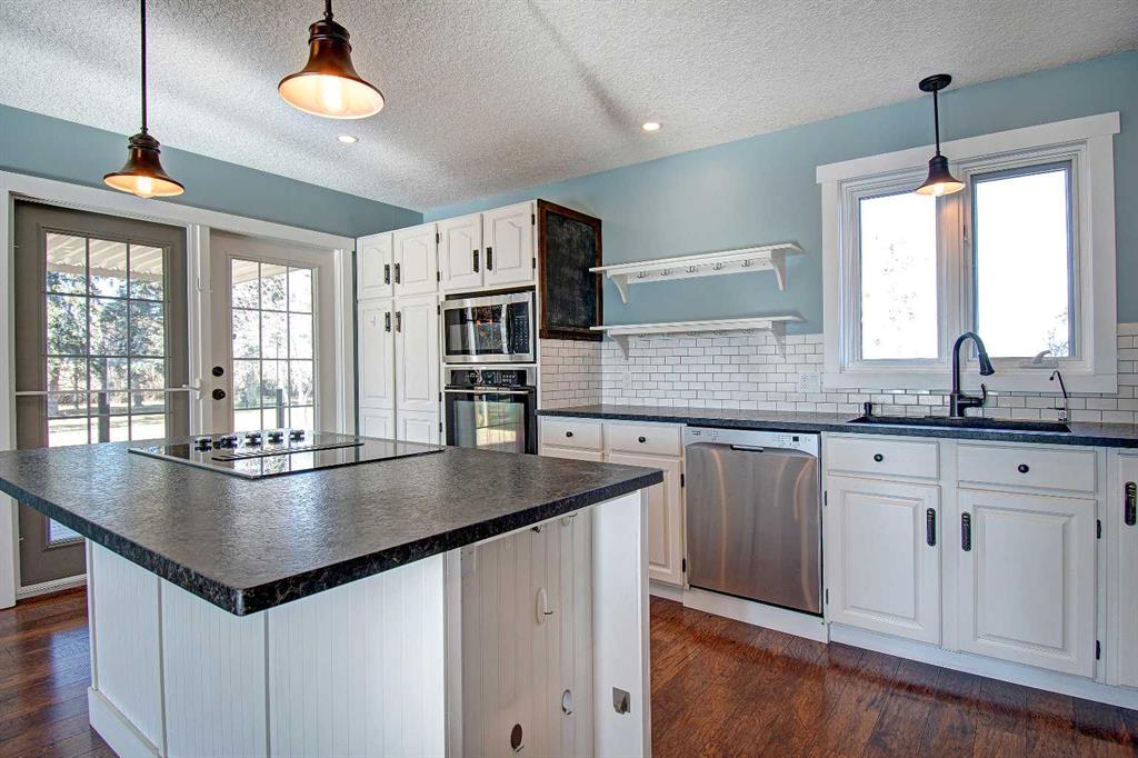 INCREDIBLE OPPORTUNITY! This polished bungalow has been updated and ready for your family to call it home. The long driveway, mature trees and landscaping give this property a private setting. Upon entering, you are greeted by a modern farmhouse feel with a bright and open living room, dining and kitchen space. The kitchen is a chef’s dream offering stainless steel appliances (including a new built-in microwave), granite counters, and tons of cabinet and counter space. The living room is spacious with big windows and a custom fireplace as a focal point. There are three good-sized bedrooms one of which is the primary with an updated three pce ensuite, the second has a cheater door to the main bath that has been recently updated, and a third bedroom is set at the front of the home and currently acts as a home office. Access to your oversized double garage and main floor laundry complete the main floor. On the lower level you will find LVP flooring, a huge recreation room, 4th bedroom (window not egress), and space to add another bathroom, should you choose to do so. This home has an updated top-of-the-line water filtration system and a good-producing well. The house has been upgraded in recent years including the furnace, hot water tank, roof, and siding. The shop measures 24' x 32' and has electricity and a drain system, so use it as equipment storage, convert to a barn, or use as a shop - many options! This property is immaculate and move-in ready. Welcome home! Call to book your private viewing today!