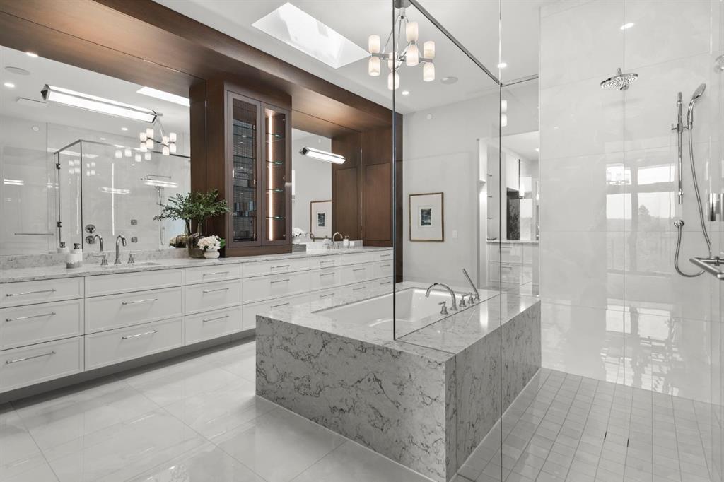 Enjoy bespoke finishes including white oak hardwood, custom designer millwork, natural stone, and hand-applied plaster accents that evoke understated sophistication. The high performance kitchen is a culinary showpiece, featuring Wolf and Sub-Zero appliances paired with tailored cabinetry that will inspire even the most seasoned chef.