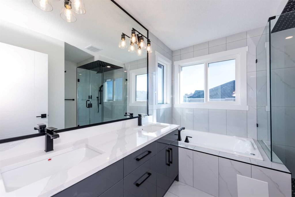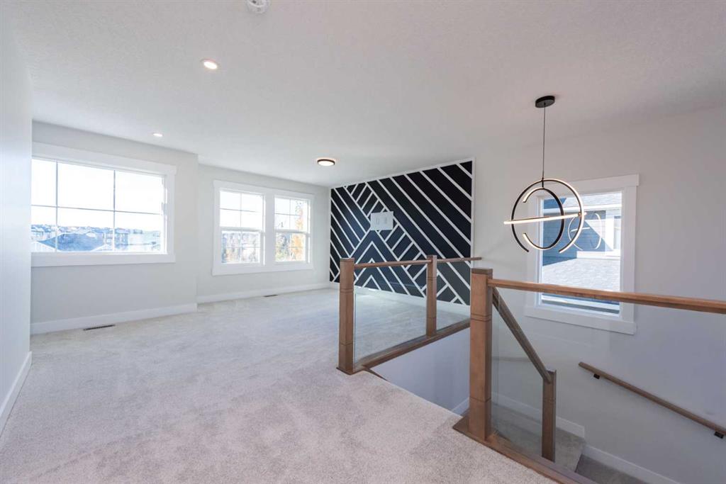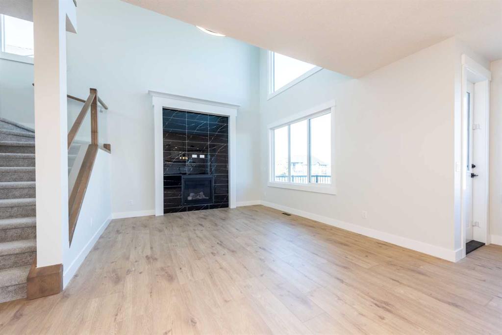Welcome to this stunning brand-new detached home in Okotoks, ideally located near Costco and other amenities. This beautifully upgraded residence features a grand foyer with elegant tiles, a formal dining room, a den, and 8-foot doors throughout the main floor. The high ceiling living room enhances the spacious feel with cozy fireplace and media niche, while the engineered hardwood flooring adds a luxurious touch. A well-designed mudroom with closets provides ample storage, and a full washroom with a standing shower is conveniently located on the main floor. The highly upgraded kitchen is a chef’s dream, featuring a large island, an ice and water fridge, an electric cooktop, a built-in microwave, and a built-in oven with upgraded backsplash. A walkthrough pantry with addition cabinetry. Upstairs, you will find four spacious bedrooms, including two primary bedrooms, one with a four-piece ensuite and the other with a five-piece ensuite, along with an additional main bathroom. A loft provides extra living space, and the laundry room adds convenience. The upgraded carpet and sleek glass railings throughout enhance the modern aesthetic. Outside, the home boasts a stucco exterior, a huge backyard, and a big deck with BBQ Gas line perfect for outdoor entertaining. A separate side entry leads to the unfinished basement, offering endless possibilities for customization. This home is an incredible value in a prime location.