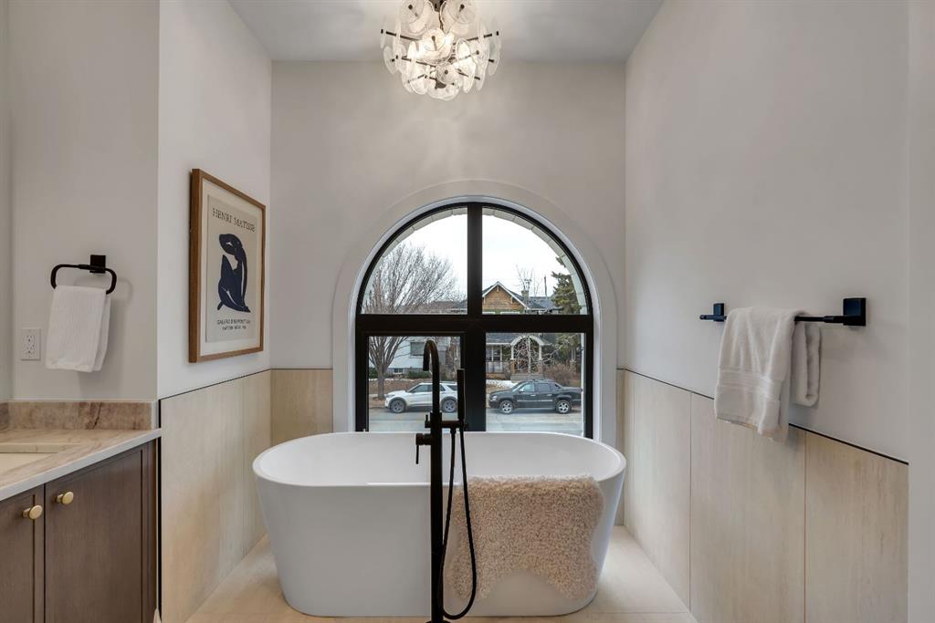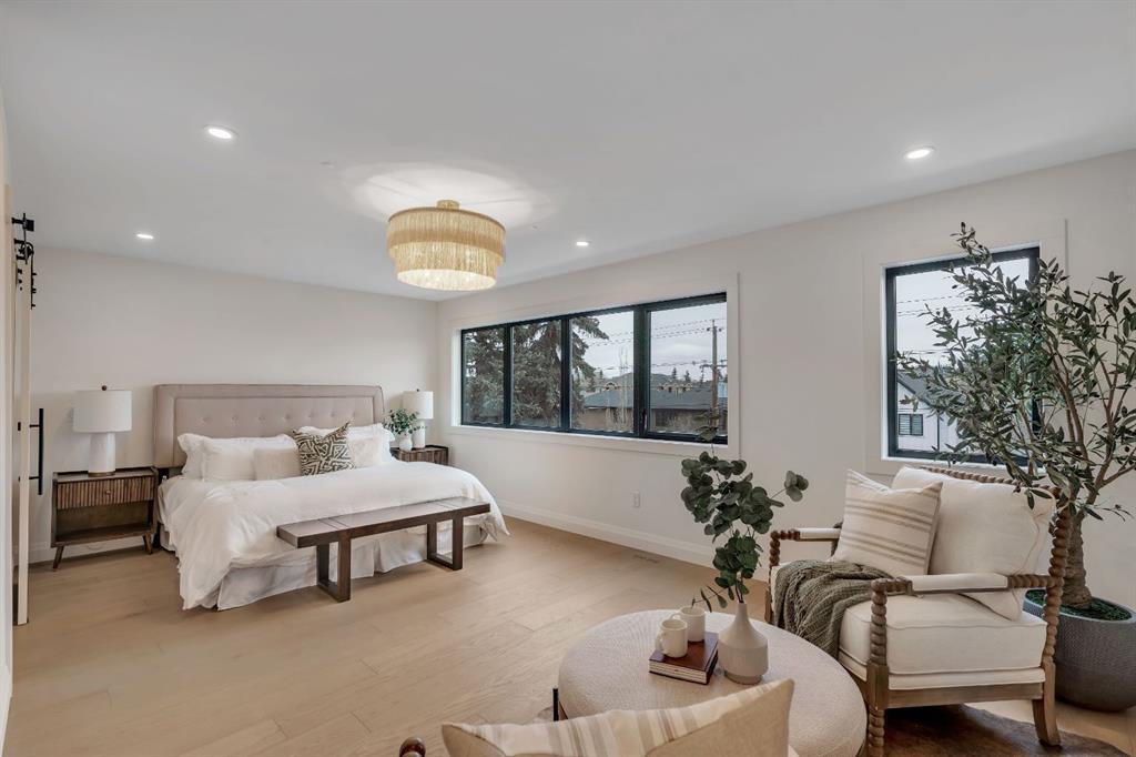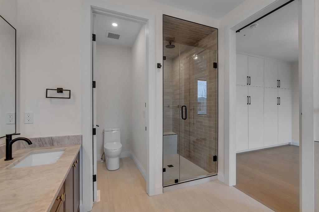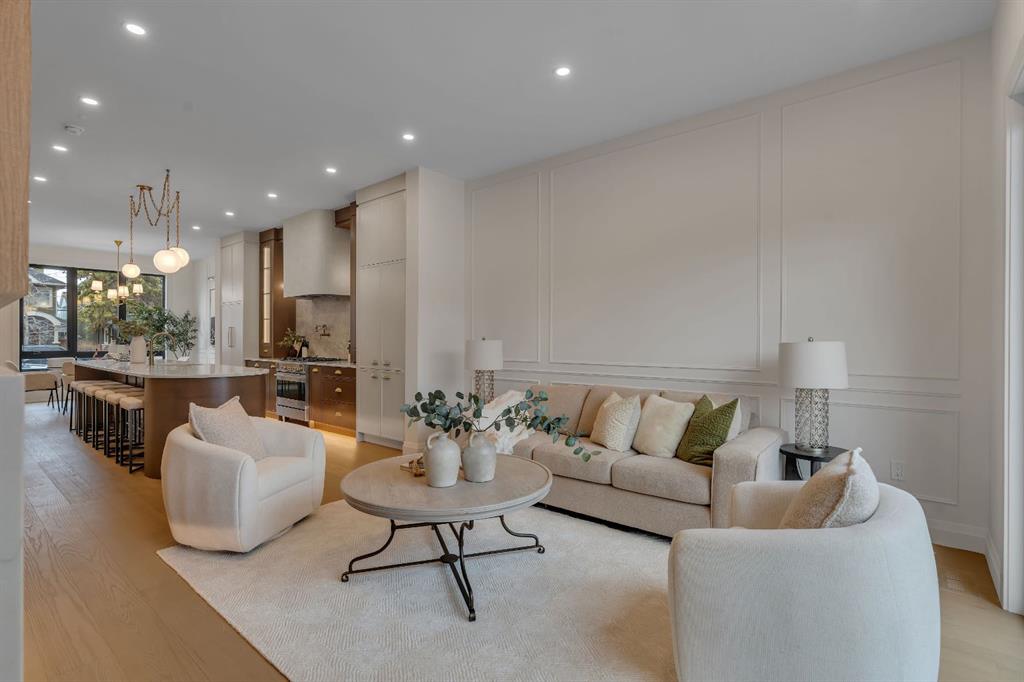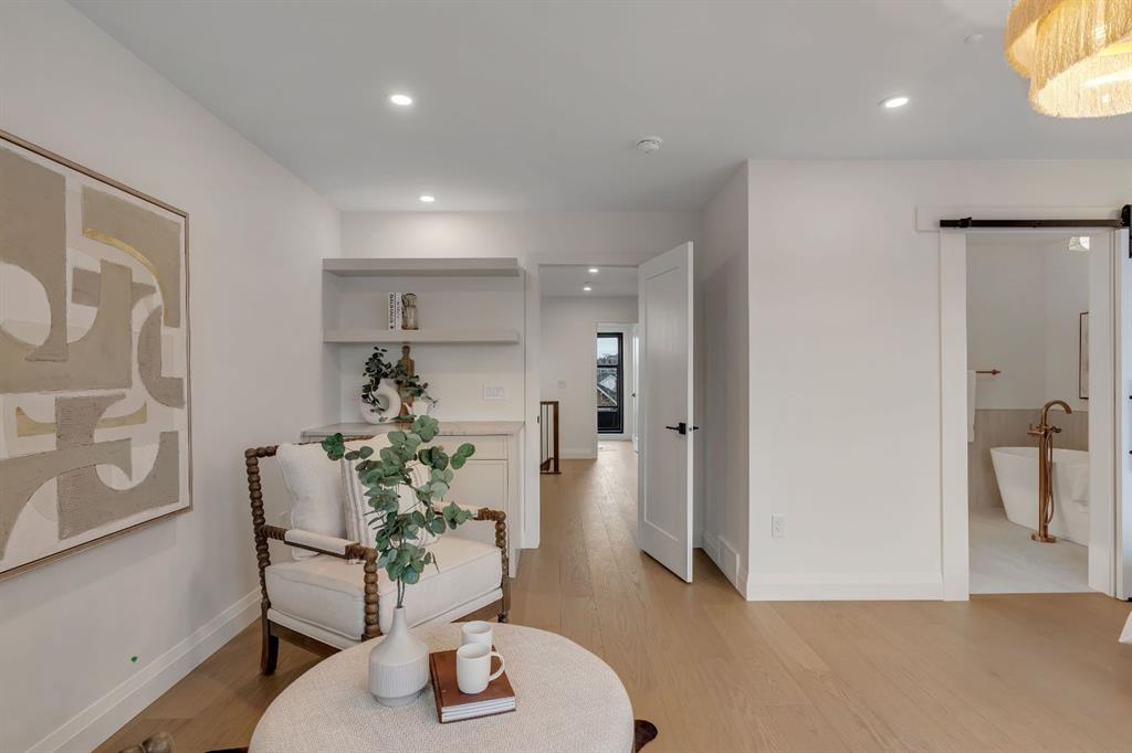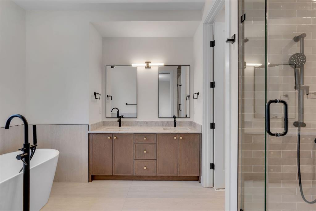 Unit 2 is sold with only Unit 1 remaining, presenting a rare opportunity to own a brand new exceptional three storey semi detached infill offering a total of over 3,700 sqft of thoughtfully curated living space across four levels in the sought after West Hillhurst. This residence showcases elevated inner city living with impeccable craftsmanship and refined contemporary design, highlighted by wide plank hardwood flooring and striking custom oak detailing throughout. The open concept main floor is defined by 10 foot ceilings and a formal dining area with custom wainscoting and large south facing windows that fill the space with natural light, while the kitchen stands out as a true centrepiece with a dramatic 12 foot curved oak island, quartz countertops and backsplash, premium built in appliances, gold and black hardware, two tone cabinetry, a plaster finished curved hood fan, gold pot filler, and under cabinet lighting, complemented by a thoughtfully concealed walk in pantry with custom cabinetry. The living room offers a warm yet sophisticated atmosphere with a designer gas fireplace featuring fluted tile, quartz accents, and curved oak built ins, stepping out to a very large backyard, while a spacious mudroom with built ins leads to a beautifully finished powder room with oak cabinetry, half panelled walls, and under mount lighting. The upper level features two luxurious primary suites, each complete with double oak vanities, freestanding soaker tubs, fully tiled showers, and in-floor heating, along with a versatile bonus room and a full laundry room, all enhanced by carefully selected designer lighting and elegant sconces. The third level loft creates a private retreat with an additional expansive primary bedroom, a large walk in closet with an oak finished island, make-up desk, a spa inspired ensuite with double oak vanity, in-floor heat, and a steam shower, as well as a dedicated office space that opens onto a private balcony with unobstructed downtown views. The fully developed basement adds further functionality with a generous recreation area, wet bar, fourth bedroom, full bathroom, in-floor heat, A/C rough in, and a dedicated home gym, all finished with oversized windows to maximize natural light. Designed by John Trin, this architectural statement home offers a seamless blend of luxury, comfort, and design, ideally located near parks, schools, the river, and everyday amenities. Call today to book your private tour!